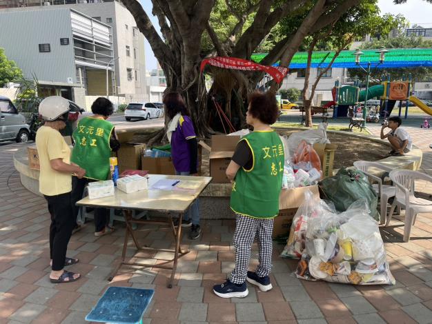 本所於11月9日上午分別在文元里舉辦「容器兌換活動」,感謝里民熱情響應,把家中容易孳生積水的廢棄容器一同帶來回收。本次共回收廢塑膠容器57公斤、廢鐵容器22公斤、廢鋁容器17公斤、其他容器6公斤,總計102公斤。每一點行動都值得鼓掌,讓生活空間變得更安心。