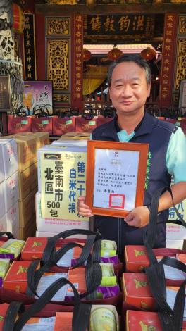 感謝台灣首廟天壇114年9月30日捐贈北區區公所500包平安米及15份普渡物資濟助弱勢。 天壇長期致力於公益,固定每年協助弱勢家庭、發放獎學金以外,平安米代捐及愛心捐物也是例行的公益活動,每年集結信眾們滿滿的善心,一起讓愛心遍布台南各區里及社福團體。 北區林禎輝主秘代表潘寶淑區長前往致贈感謝狀,感謝天壇幫助許多弱勢家庭,盼社會各界持續提供資源挹注弱勢。